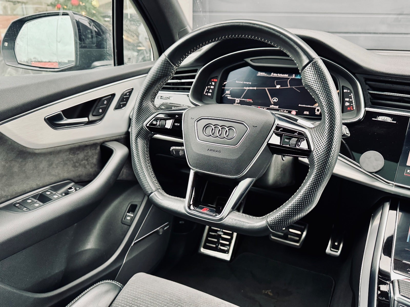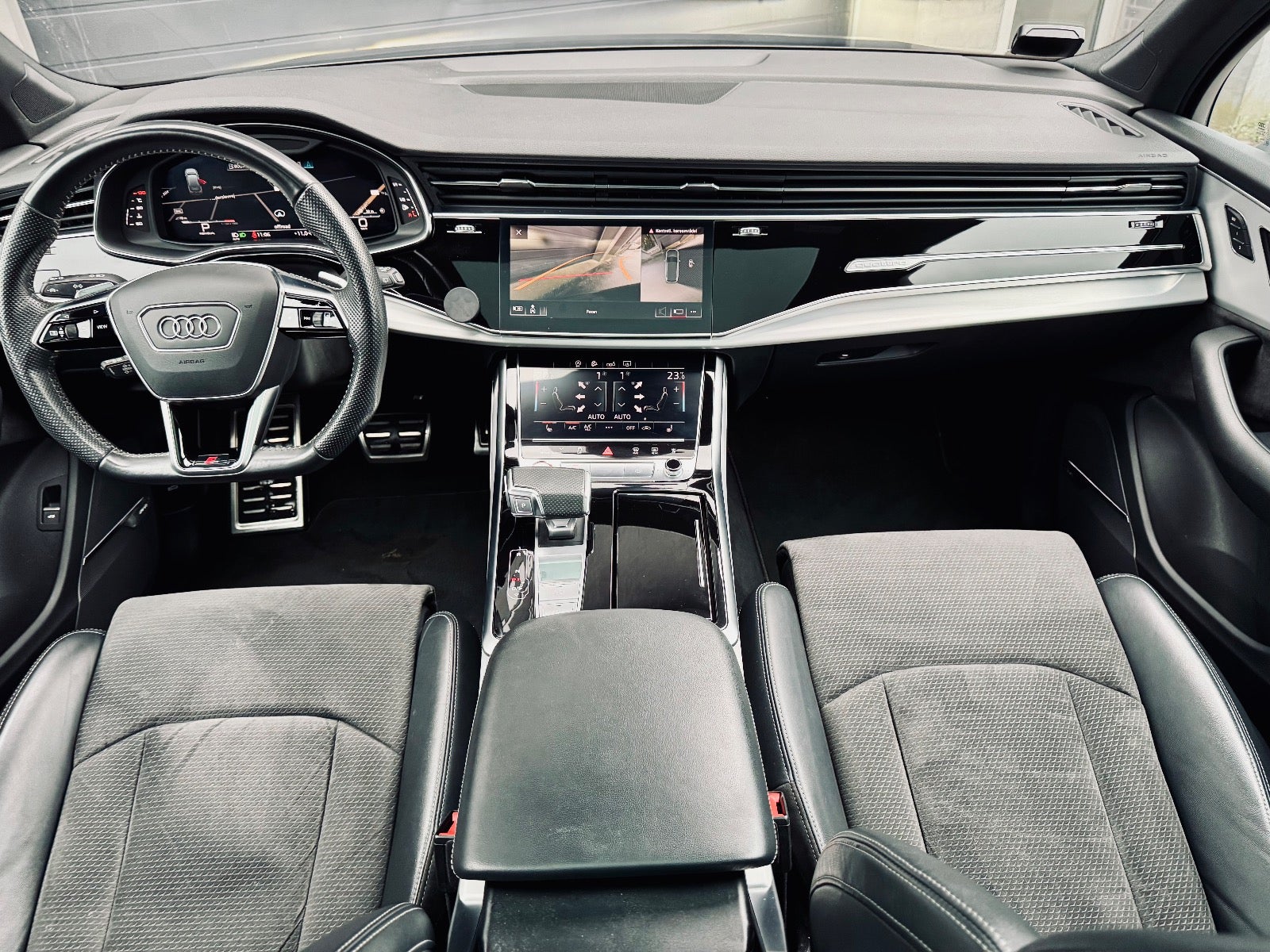 digitalt cockpit, kørecomputer, adaptiv fartpilot med kø-assistent, nøglefri adgang, nøglefri tænding, 360° kamera + 3D kamera, bakkamera, parkeringssensor (bag), parkeringssensor (for), multifunktionsrat, dellæderindtræk, alcantaraindtræk, læderrat, sportssæder, el indst. forsæder m. memory, el indst. forsæder, højdejust. forsæder, mørk loftbeklædning, 20″ alufælge, vinterhjul, el-klapbare sidespejle m/varme, fuld led forlygter, led kørelys, kurvelys, adaptive forlygter, matrix led forlygter, dynamisk blinklys, dynamisk blinklys i bag, mørktonede ruder i bag, aftageligt træk, ratgearskifte, automatgear, fuldaut. klima, 2 zone klima, aut. nedbl. bakspejl, udv. temp. måler, sædevarme, el betjent bagklap, fod betjent bagklap, adaptiv undervogn, luftundervogn, elektrisk parkeringsbremse, trådløs mobilopladning, dab radio, navigation, håndfrit til mobil, musikstreaming via bluetooth, android auto, apple carplay, regnsensor, automatisk parkeringssystem, skiltegenkendelse, automatisk lys, fjernlysassistent, 6 airbags, esp, vognbaneassistent, blindvinkelsassistent, automatisk nødbremsesystem